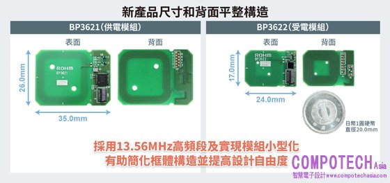 2021年11月23日--半導體製造商ROHM(總公司:日本京都市)推出了天線和電路板一體化的小型無線充電模組「BP3621(供電模組)」及「BP3622(受電模組)」,可輕鬆實現SmartTag和智慧卡等小型裝置以及電腦周邊設備的無線充電功能。