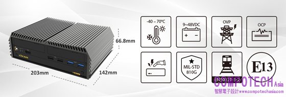 新上市DI-1100體積緊湊,尺寸僅203 mm (W) x 142 mm (D) x 66.8 mm (H),且具有靈活安裝方式包括壁掛/側掛/DIN -rail/ VESA,可輕易裝入移動式設備或狹小空間內,如AGV、AMR、遠端監控設備等。DI-1100強固穩定的特性,通過美軍設備檢驗標準(MIL-STD-810G)、軌道交通 EN50155(EN 50121-3-2 only)以及E-mark等國際認證,讓應用情境更顯豐富。
