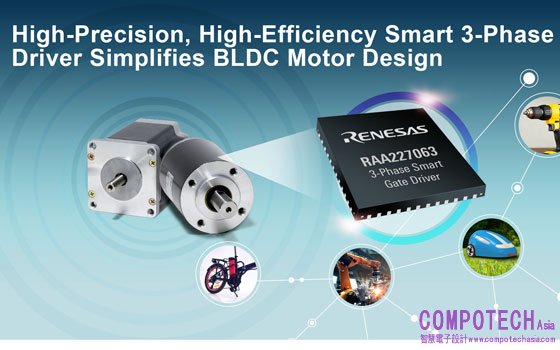 2021年12月8日--先進半導體解決方案頂尖供應商瑞薩電子(TSE:6723)今天推出用於直流無刷(BLDC)馬達應用的RAA227063智慧閘極驅動器。新元件可透過SPI介面控制,使其能支援帶有轉子位置感測器和無感測器的馬達應用。也提供可程式閘極驅動電壓,以支援常用於馬達逆變器的N通道MOSFET,以及提供更高功率密度的GaN FET。RAA227063可搭配各種MCU,包括瑞薩眾多的MCU產品線。