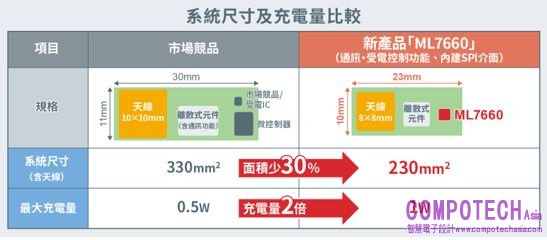 1. 以業界最小系統尺寸實現高達1W的無線充電