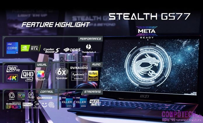↑榮獲2022年CES創新獎的Stealth GS77,是商務與電競筆電的完美結合