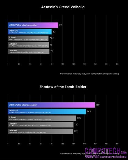 ↑搭配MSI獨家OverBoost技術,Raider GE系列電競筆電CPU+GPU總功率最高可達220W,帶來領先13%以上性能