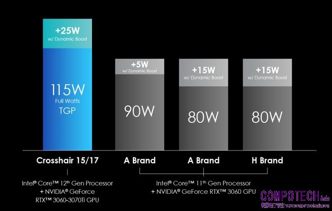 ↑Crosshair 15最高配備NVIDIA® GeForce RTX™ 3070 Ti 筆記型電腦GPU,TGP瓦數最高可達140 W
