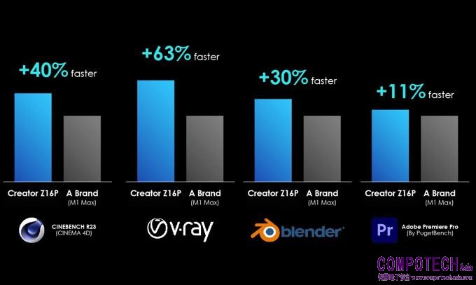 ↑透過先進的散熱設計,Creator Z16P能為各種常用創作軟體帶來顯著的效能提升
