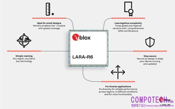 u-blox 蜂巢行動產品管理部門 Drazen Drinic 表示「LARA-R6 和 LENA-R8 是我們 LTE Cat 1 產品系列的重要新成員,能提供無縫漫遊和低數據成本,滿足鎖定全球市場的小型物聯網解決方案的需求,在此不斷成長的市場中。這兩個模組皆能以單一產品(SKU)提供全球漫遊,以大幅簡化物流和供應鏈管理。此外,這兩個模組的小尺寸特性,更為產品開發人員提供了更大的設計彈性,讓他們能開發出更小外形尺寸的產品」。