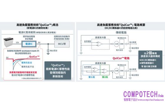 QuiCurTM是根據實現高速負載響應的ROHM自有電路「Quick Current」而命名的商標。使用該技術後,電源IC的回授電路能夠在穩定工作的前提下,確保所預期的負載響應特性(響應性能)。該技術具有以下特點,有助減少應用產品電源電路設計工時。