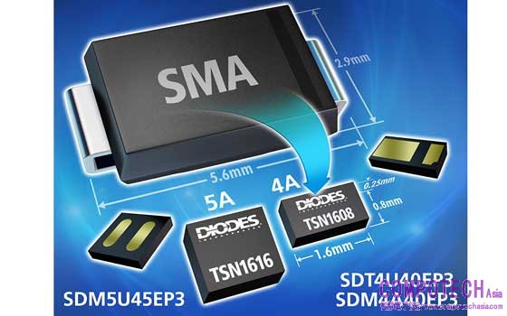 2022年5月4日--Diodes 公司 (Diodes) (Nasdaq:DIOD) 宣布推出一系列以超小型晶片級封裝 (CSP) 的高電流蕭特基 (Schottky) 整流器 , SDM5U45EP3 (5A、45V)、SDM4A40EP3 (4A、40V) 及 SDT4U40EP3 (4A、40V) 達到業界同級最高電流密度,滿足市場對於尺寸更小、更高功率的電子系統需求。