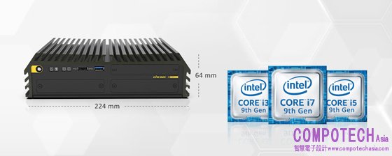 DV-1000精巧機身(224 x 162 x 64 mm)面積僅半張A4紙張大小,搭載9/8代Intel® Core™ i7/i5/i3 (Coffee Lake-R S series)處理器,支援DDR4 2666 MHz,記憶體最高達128 GB。存儲選擇則提供1x2.5’’ SATA HDD/SSD托盤、2x mSATA插槽、1xM.2 Key M 2280插槽,可支援NVMe高速SSD。體積小卻具備高速運算與多元存儲選擇,可滿足不同領域的應用。