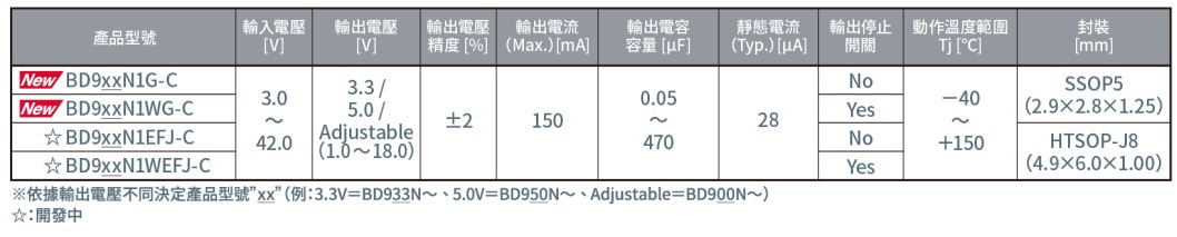 ROHM還計畫推出多種輸出電壓和封裝形式,到2022年底將本產品系列擴充至22款產品,到2023年底再增加24款產品,並推出可支援500mA輸出電流的產品,產品系列共計46款產品,持續為解決應用課題有所貢獻。