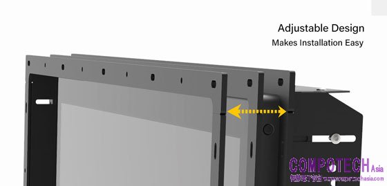 CO-100系列最大的特色莫過於可調式安裝支架,是專為設備製造商所開發而成。多段刻度的調整,能適應多數機櫃的不同厚度,每個尺寸精準定位,更加強固不易滑動,並支援多款鎖固方式 (Panel Type/Boss Type),對於使用全平面安裝與標準安裝的工業機台,有效簡化安裝步驟,提供更簡易便捷的整合關鍵,面對不同材質、厚度的機櫃外殼,也能確保外觀一致的整體性呈現。