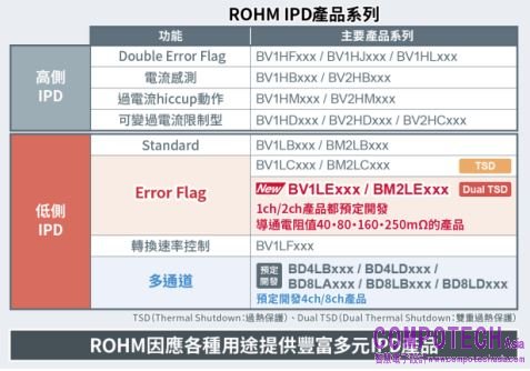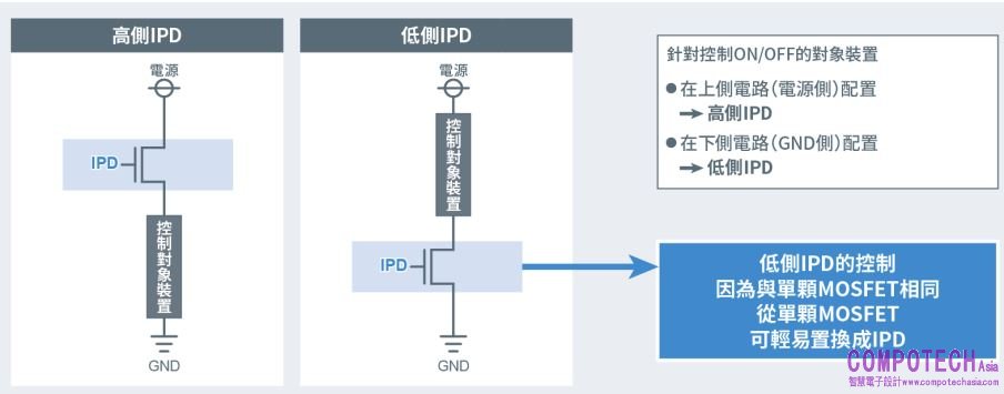 不僅可控制電子電路的ON/OFF,還可以保護電路避免受到電氣故障(異常時的過電流)影響的元件。與傳統的機械繼電器不同,這種元件沒有機械觸點,因此在壽命、可靠性和靜音方面都表現出色。另外,MOSFET作為普通的半導體開關元件,可能會因過電流而損壞,而IPD則內建保護功能,可以用來構建更安全、更高可靠性的系統。