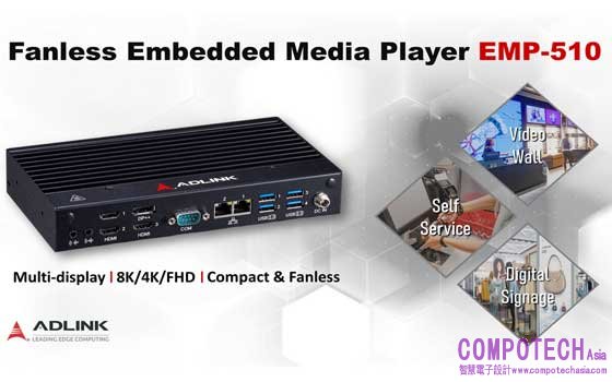 2023年5月5日--邊緣運算解決方案全球領導品牌凌華科技(股票代號:6166)推出全新無風扇嵌入式媒體播放機EMP-510,具有強大的邊緣AI運算效能、充足的I/O埠、靈活的擴充插槽、多顯示器支援和精巧的尺寸設計,易於在有限空間內部署,是智慧零售或資訊娛樂業中數位看板和電視牆等應用的理想解決方案。