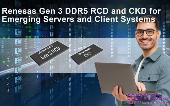 2023年6月28日--先進半導體解決方案頂尖供應商瑞薩電子(TSE:6723)今天推出第三代DDR5暫存時脈驅動器(RCD)和第一代用戶端時脈驅動器(CKD)用於新興的伺服器及用戶端DDR5 DRAM。藉由這些新的驅動器IC,瑞薩成為唯一一家為雙列直插式記憶體模組(DIMM)、主板和嵌入式應用提供完整DDR5記憶體介面產品組合的供應商。