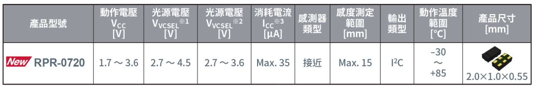 2023年8月8日--半導體製造商ROHM(總公司:日本京都市)針對包括無線耳機和智慧型手錶等穿戴式裝置在內,需要脫戴偵測和近接偵測的各種應用,開發出2.0mm×1.0mm尺寸的小型近接感測器「RPR-0720」。