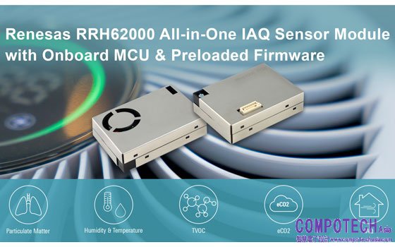 2024年8月21日--先進半導體解決方案頂尖供應商瑞薩電子(TSE:6723)今天推出一款專為室內空氣品質監測所設計的先進一體式感測器模組。RRH62000是瑞薩首款多感測器空氣品質監測模組,在緊湊的設計中整合了多個感測器參數,可準確檢測不同大小的顆粒、揮發性有機化合物和對人體健康有害的氣體。模組內含瑞薩微控制器(MCU),為不斷成長的空氣監測應用市場提供智慧感測器管理解決方案,包括空氣清淨機、煙霧偵測器、HVAC系統、氣象站和智慧家居系統。其強大的韌體也使客戶產品能夠符合世界各地的各種空氣品質標準。