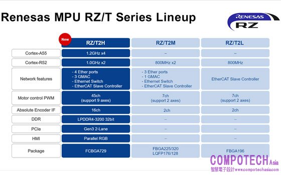 RZ/T2H現已上市。瑞薩預計於2025年第一季發布新款RZ/N2H,該元件以更小的封裝提供與RZ/T2H相同的性能。這對於PLC和運動控制器等工業控制器設備來說是最佳的選擇。