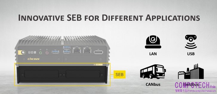 DC-1300系列不僅具備豐富的I/O介面,包括LAN、USB、COM、4K DisplayPort等,尚可透過Cincoze獨家的CMI/CFM模組,擴充COM、DIO、顯示介面及IGN功能等。為了進一步滿足各類應用需求,Cincoze推出全新可堆疊擴充盒(SEB, Stackable Expansion Box)。擴充盒充分利用DC-1300系列內建的雙M.2 B Key插槽,可支援市售各式I/O、CANbus和Fieldbus等模組,適用於智慧製造、智慧交通、能源管理等領域,實現更多樣的應用目的。