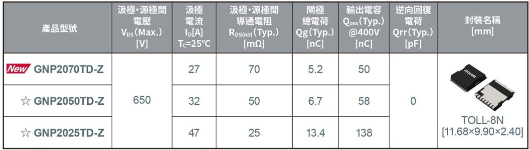 為了實現無碳社會,「提高電源和馬達等用電量占全球一半的應用的效率」已成為全球性課題。其中功率元件正是提高其效率的關鍵,特別是SiC(碳化矽)、GaN等新世代半導體材料將有望進一步提高各類型電源的效率。ROHM於2023年4月將650V耐壓的第1代GaN HEMT投入量產,並於2023年7月將閘極驅動器和650V耐壓GaN HEMT一體化封裝的Power Stage IC投入量產。為了對應大功率應用的進一步小型、高效率化的市場要求,ROHM採用在過往DFN8080封裝基礎上追加的形式,來強化650V GaN HEMT的封裝陣容。在TOLL封裝中內建第2代元件並產品化。