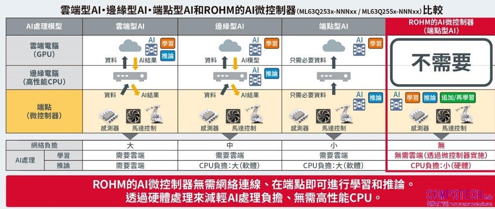 Solist-AI™是ROHM針對邊緣運算領域提供的端點側AI解決方案,其名稱源自音樂術語「獨奏者」,透過自主研發的設備端學習AI技術,無需依賴雲端伺服器,即可在獨立的邊緣設備上執行即時訓練和推理,具有體積小、功耗低的特點,有助實現AI創新和擴展。