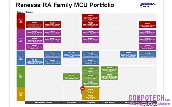2025年4月22日--先進半導體解決方案頂尖供應商瑞薩電子(TSE:6723)今天推出新款RA0E2微控制器(MCU),採用Arm® Cortex®-M23核心。新款具有成本競爭力的產品提供極低的功耗、廣操作溫度範圍,以及各式各樣的周邊功能和安全功能。