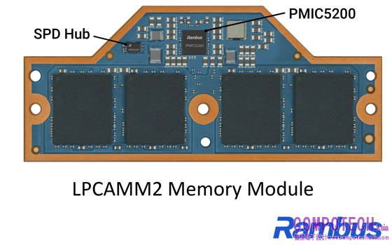 圖一:搭載Rambus PMIC與SPD Hub晶片的LPCAMM2記憶體模組