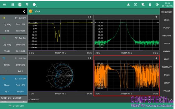 VVM 則是進行複雜相控陣列天線系統 (如各大機場常見的 VOR/ILS 系統) 中電纜相位匹配的重要工具。透過單一螢幕上以表格方式呈現各通道的量測結果,有效簡化多條纜線的相位匹配作業。