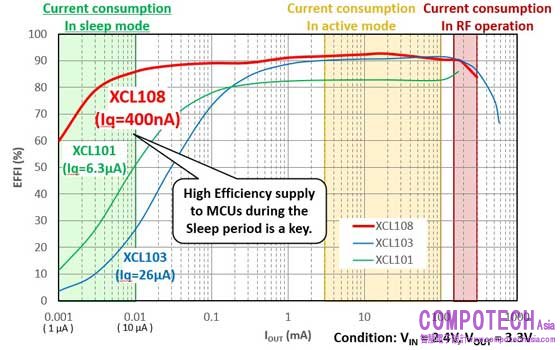 XCL108系列的最大特點是其400nA的超低消耗電流和超節省空間的線圈一體型結構,使其成為需要長電池壽命的近代小型電子設備的理想選擇。