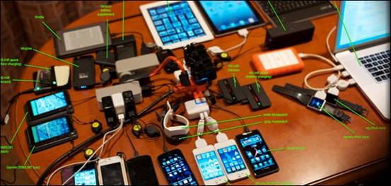 若我說,您活在充電魔咒的世界裡,您相信嗎?低頭族每日充電一次的人,何其多。且來看個奇人(蘋果的另一創辦者Steve Wozniak)的旅行包中有哪些東西,在這個圖片中還不含一些小配件接線喔!還真是狂人ㄟ。