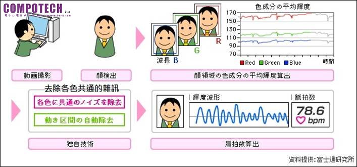 富士通研究所於2013/3發表了顏面動畫判定脈搏的技術,利用PC上的Web攝影機以及專用軟體,可以在顯示器上監視脈搏的變化。