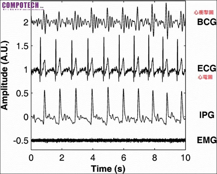 心衝擊圖(或說心彈動圖,似乎不存在正式的中文翻譯名稱),是伴隨著心臟跳動而產生的微弱體動,相對於心臟電氣動作的心電圖ECG,呈現出略為遲緩的波峰狀。而村田所用的手法就是使用了加速度感應器來檢測出,進而測定心拍(心率)。