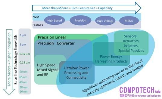 圖1:ADI 認為,「超越摩爾定律」旨在建構整合能力,而非執著於處理器的電晶體數目