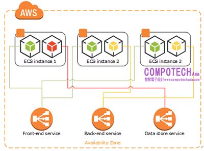 圖1:Amazon Elastic Container Service (ECS) 容器服務,可將用於共同目的之容器分組並將