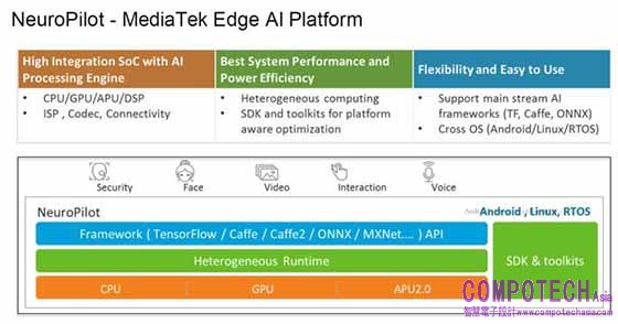 圖2:聯發科技的「NeuroPilot 邊緣 AI 平台」可應用於門禁保全、臉部辨識、人機互動及影音