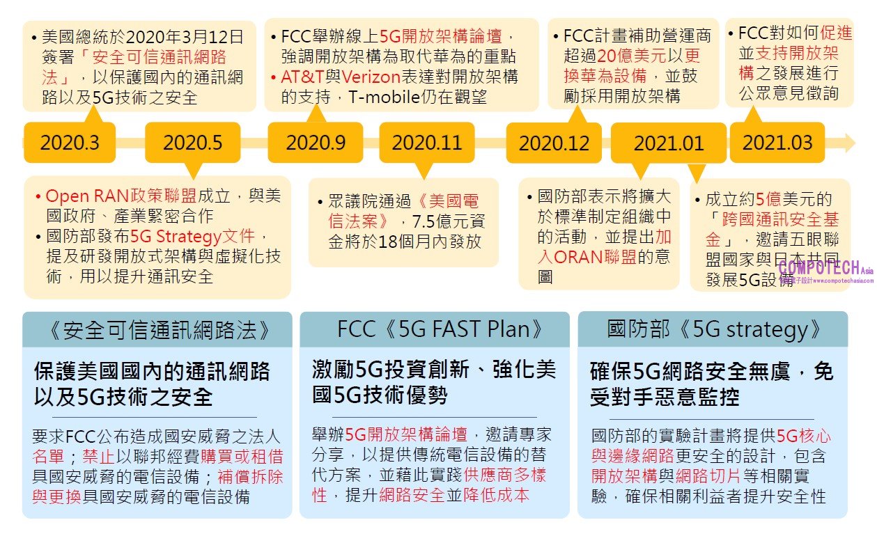 圖2:美國從多個面向政策推動 Open RAN 產業發展 資料來源:資策會MIC (2021/05)