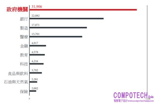 圖2:2020 年遭受勒索病毒攻擊最嚴重的十大產業