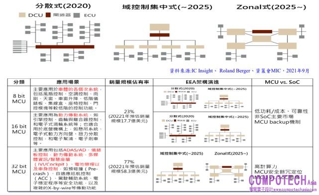 圖6:汽車電動化與自動化帶動 MCU 轉型 資料來源:資策會 MIC (2021/09)