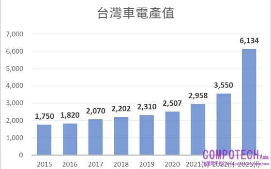 工研院預估2021年臺灣汽車電子產值2,958億新臺幣,預估2025年可望翻倍達到6,000億新臺幣。疫後產業加速技術與產品研發,汽車電子對於臺灣整體產業帶來獲利機會,臺灣在動力系統元件、車載影像元件與模組、車載資通訊系統元件及模組等皆具備核心技術與產製能力,加上ICT業者進入車電領域,搭配現階段半導體戰略優勢,將有望成為下一個兆元產業。