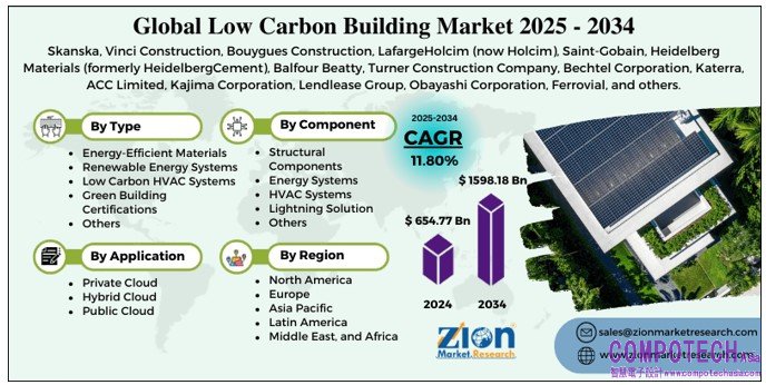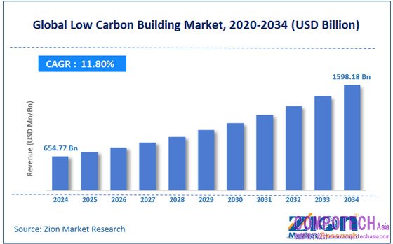 近年來,低碳建築已成為國際趨勢。Zion Market Research 報告指出,環保意識提升、城市化加速與綠色技術進步,正促使全球低碳建築市場快速成長。2024 年市場規模約 6,547.7 億美元,預計將以 11.8% 的年複合成長率推進,2034 年將達到 1.6 兆美元。屆時,城市人口將突破全球 68%,永續城市基礎設施將成為發展關鍵。