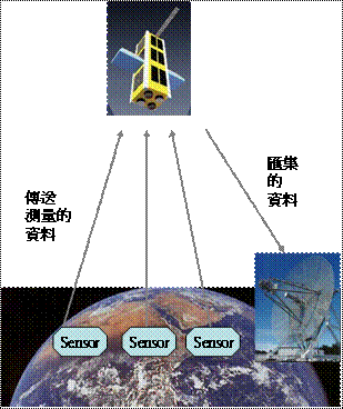 圖5:感應器‧資料匯集型。衛星與地上端的負擔均攤。筆者製圖。