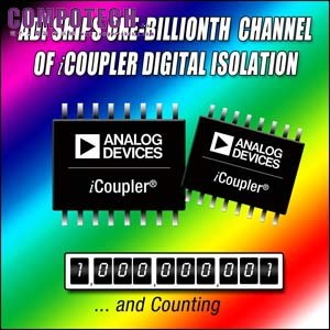 2013年9月24日--全球領先的高性能信號處理解決方案供應商ADI公司(NASDAQ:ADI)美商亞德諾公司,今天宣佈基於其專有iCoupler®數位隔離器技術的隔離解決方案出貨量突破10億通道大關。此一成就的取得離不開ADI公司十餘年來在全球電流安全隔離領域保持的領先優勢,其解決方案服務於多種應用領域的客戶,包括工業控制系統和馬達驅動、太陽能系統、油電混合汽車、醫療器材、電漿電視等。觀看影片,瞭解ADI數位隔離器技術:http://www.analog.com/zh/pr09202/icouplervideo。