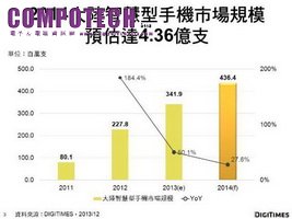 2013年12月19日--根據DIGITIMES Research預估,2014年大陸智慧型手機內需市場規模將達4.36億支,其中本土業者貢獻2.79億支;國外業者方面,三星電子(Samsung Electronics)與蘋果(Apple)的出貨量可望持續成長,預估銷量可望近1.58億支,較2013年成長3個百分點。由於大陸內需市場的競爭將更激烈,本土業者必須加速布局海外,尤其積極拓展國外業者較難切入的新興市場,方能維持出貨能量。