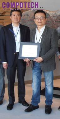 圖說: (左)台積電矽智財行銷專案副處長Dan Kochpatcharin頒發「2013年新興IP供應商」證書給(右)円星科技董事長林孝平