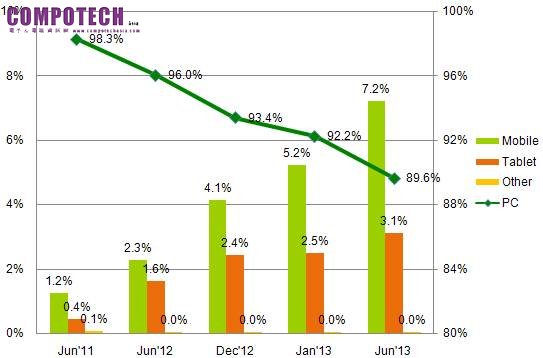 2011年6月-2013年6月台灣網頁瀏覽使用裝置分佈