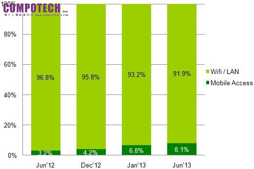 2012年6月-2013年6月台灣網頁瀏覽連線方式分佈
