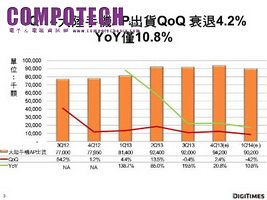 自2012年第4季開始,智慧型手機AP出貨年成長與季成長均快速放緩。