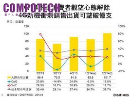 DIGITIMES Research預估,2014年第2季本土市場單季出貨將達1.01億支,季增18.5%,主因包含: