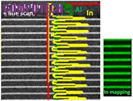 圖說:左圖為宜特分析市面上最先進之「22奈米三維電晶體」的高解析TEM影像;右圖則為分析「LED磊晶結構」之高解析TEM及EDS影像。