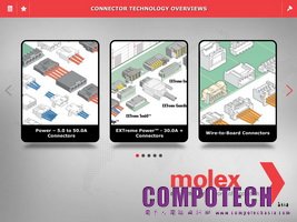 Molex 手機應用程式可讓用戶隨時隨地存取Molex互連解決方案的產品組合,這款應用程式可讓使用者在不需要保持連線的情況下比較產品、存取產品資訊,以及檢視檔案資料和視訊內容。Molex 連接器技術概述應用程式(Connector Technology Overview App)為平板電腦、智慧型手機和其它行動設備使用者提供了獲得超過90種不同Molex產品系列資訊的方便路徑,使他們能夠快速地尋找到滿足其設計需求的連接器產品系列。而連上網的App使用者則能夠連結至Molex公司網站以獲得更詳細的零件號資訊。