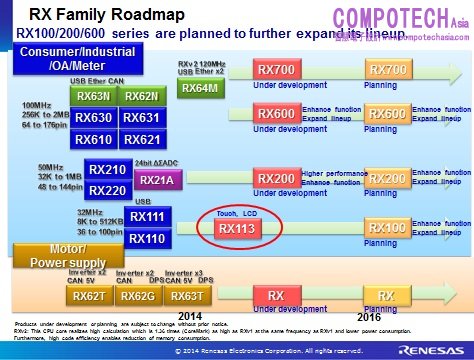 Serial communications interface (SCIe): 100-pin [7 channels], 64-pin [5 channels] Serial communications interface (SCIf): 1 channel I2C bus interface (RIIC): 1 channel Serial peripheral interface (RSPI): 1channel USB 2.0 Full Speed (USBc): [1 channel, USB 2.0 Full Speed (12 Mbps), Low Speed (1.5 Mbps) H/F/OTG] Serial sound interface (SSI): 1 channel IrDA interface: 1 channel |
