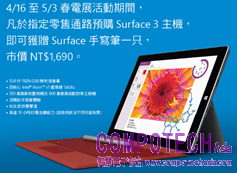 預購Surface 3送Surface手寫筆 春電展好禮優惠再加碼